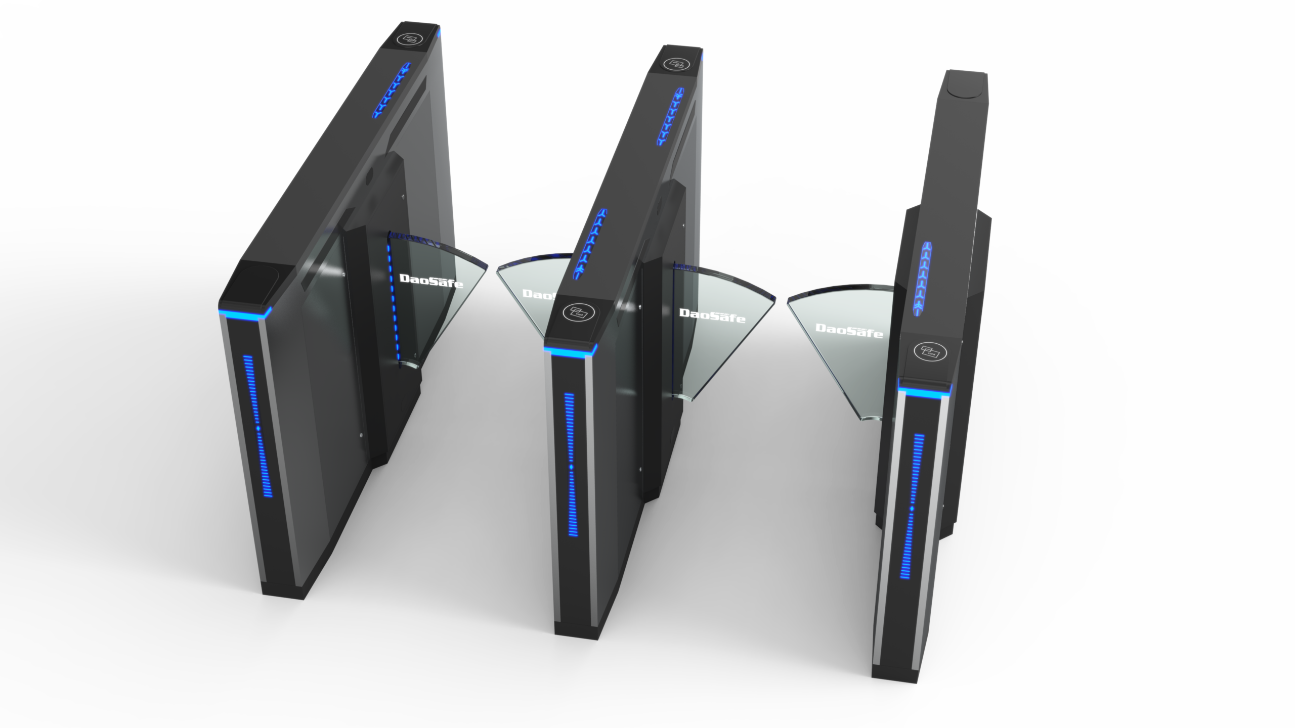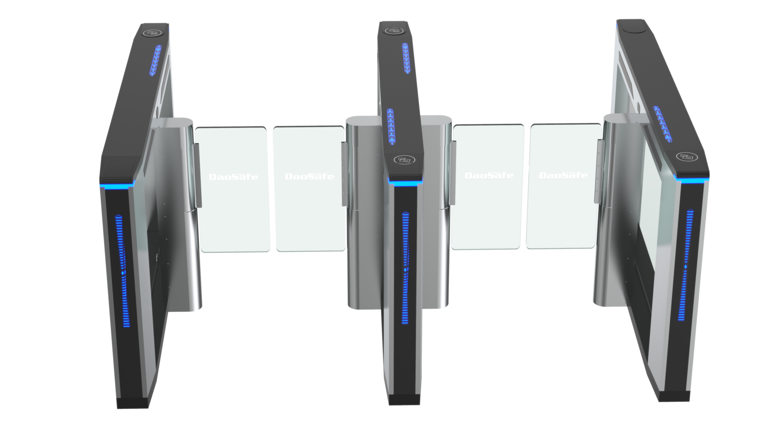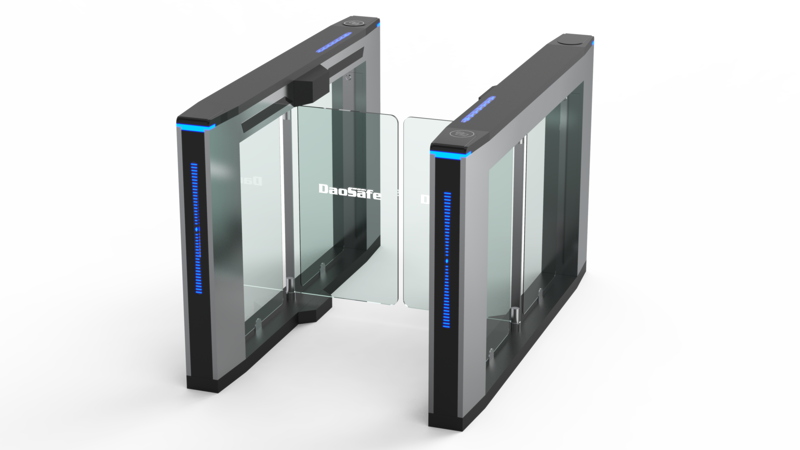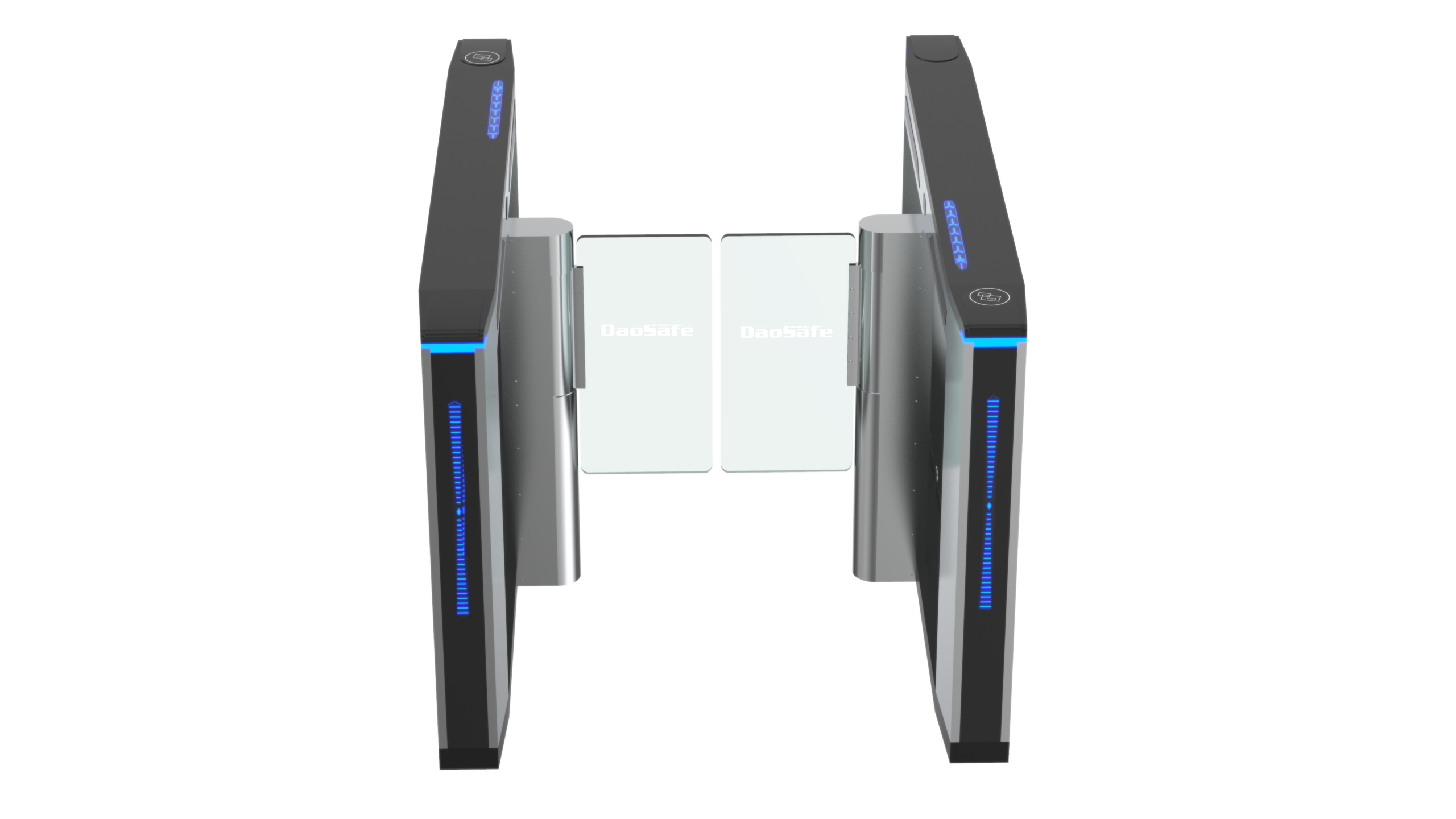 Nebula optical swing turnstile with the most advantage is that the passage width can reach to 650mm-1100mm, which is suitable for handicapped person with wheelchair or pedestrians with luggage. DSC-20 is with unique design, stylish of modern and urbanization cabinet, typical swipe card panel, attractive blue LED strip, solid body crate, sensitive infrared sensor strip, brushed stainless steel and high-end black painting process.