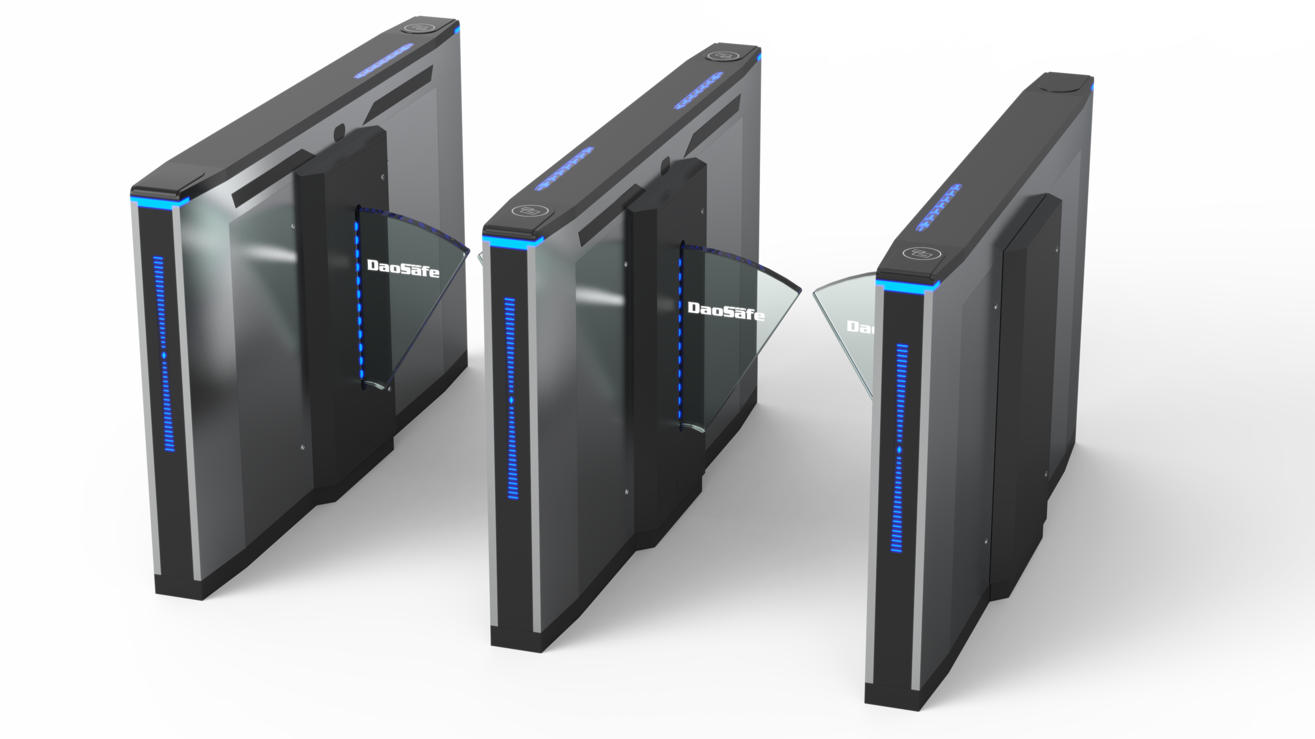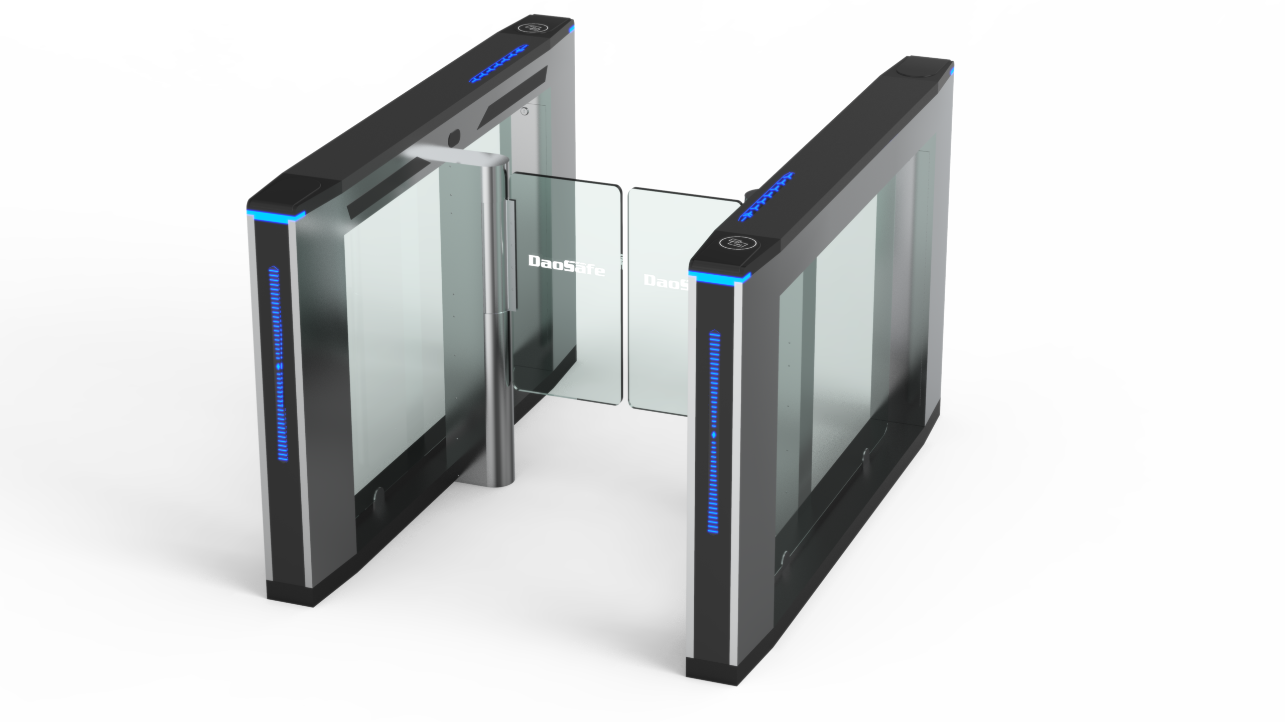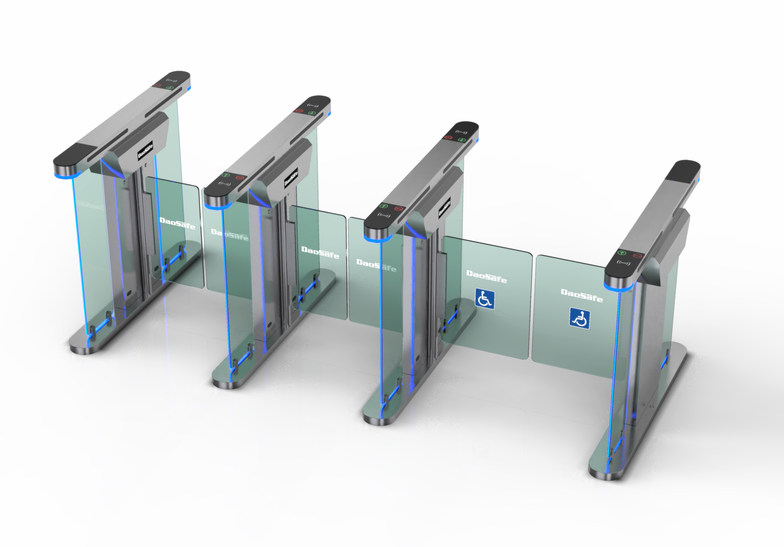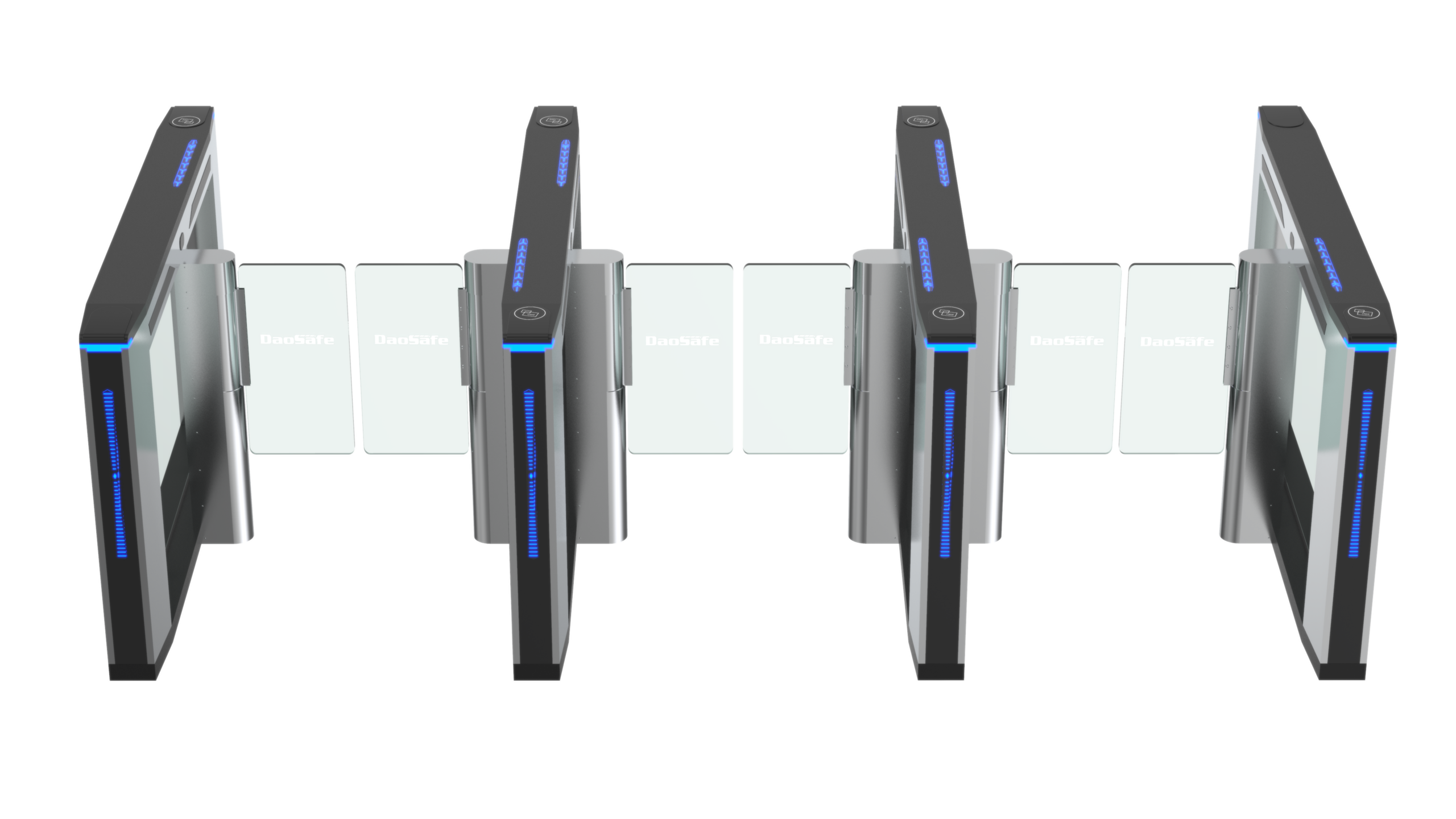 Nebula optical swing turnstile with the most advantage is that the passage width can reach to 650mm-1100mm, which is suitable for handicapped person with wheelchair or pedestrians with luggage. DSC-20 is with unique design, stylish of modern and urbanization cabinet, typical swipe card panel, attractive blue LED strip, solid body crate, sensitive infrared sensor strip, brushed stainless steel and high-end black painting process.