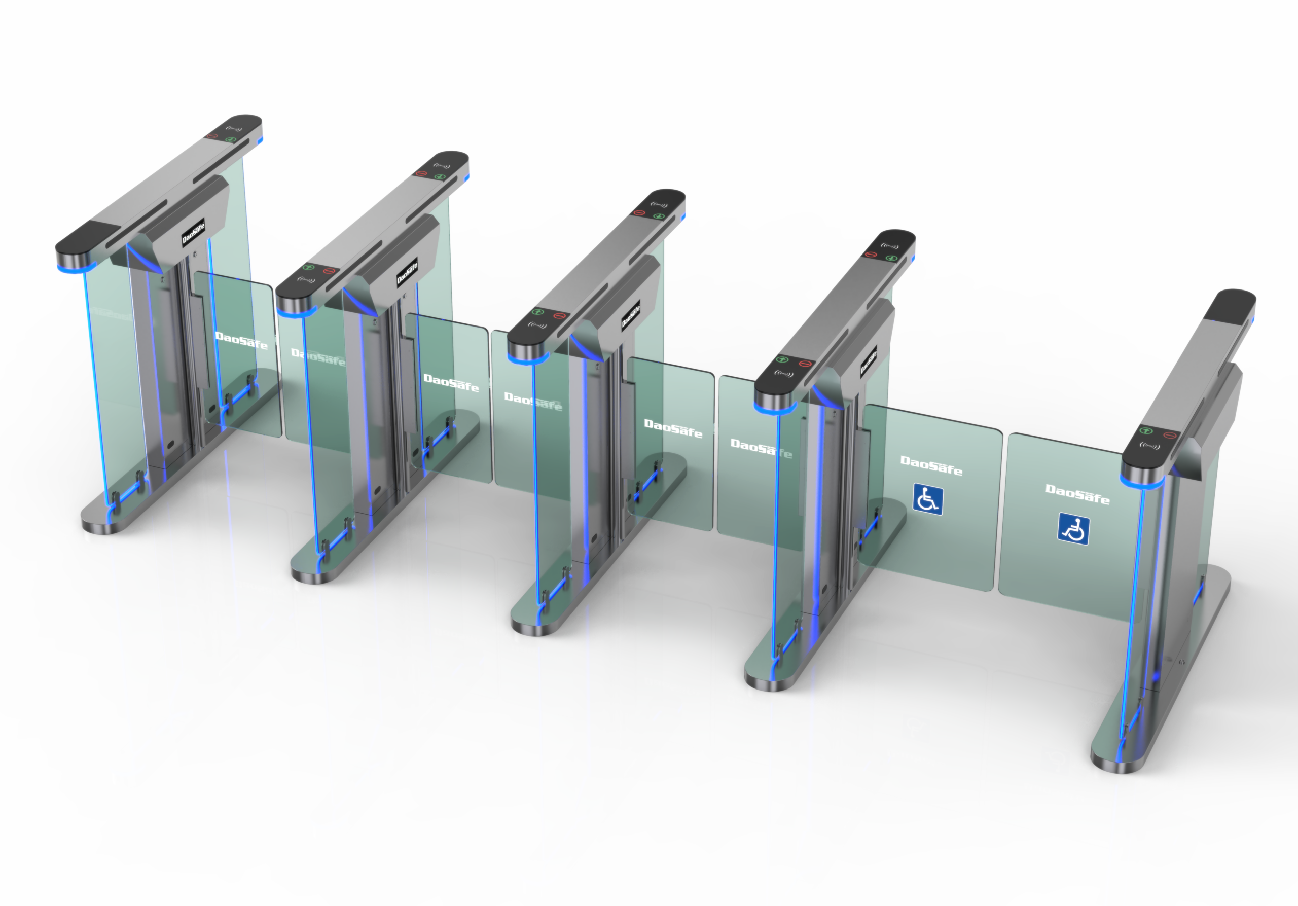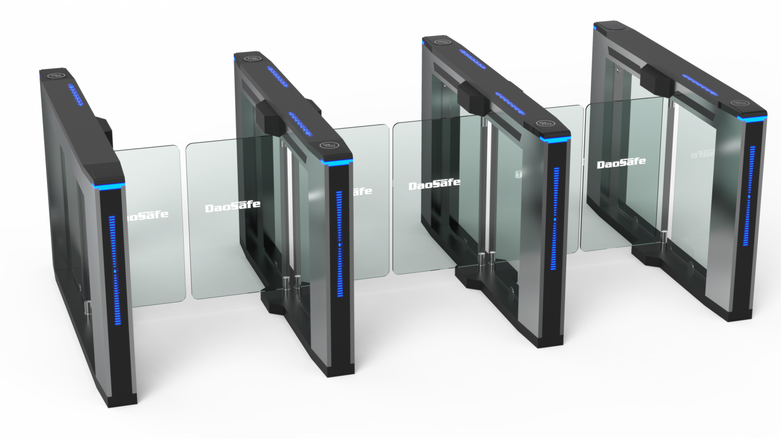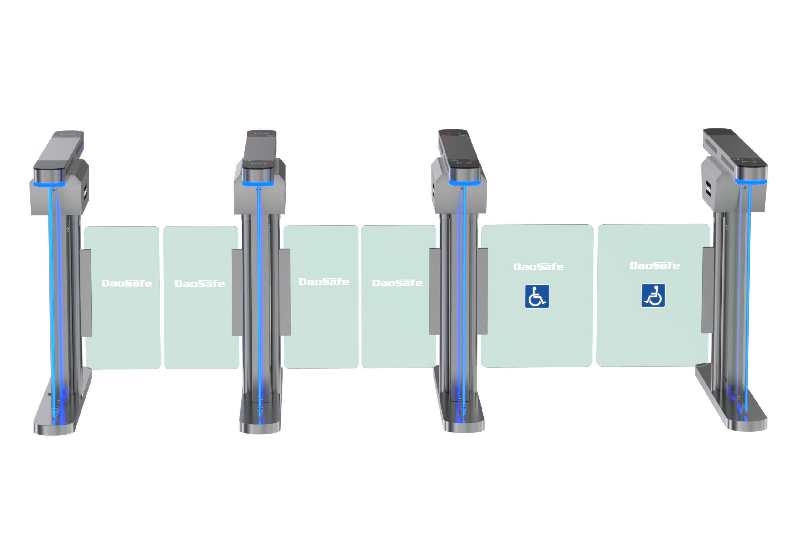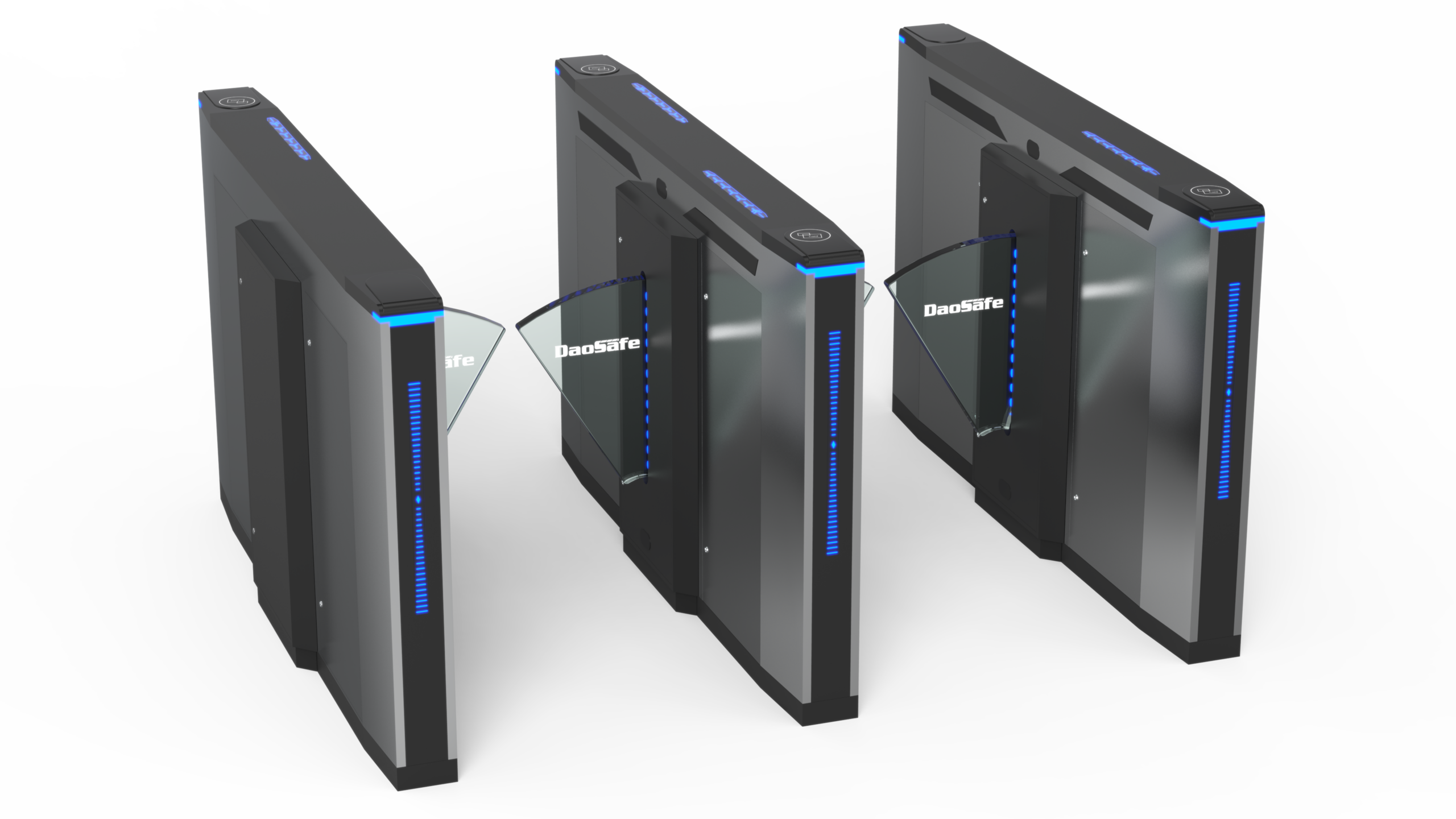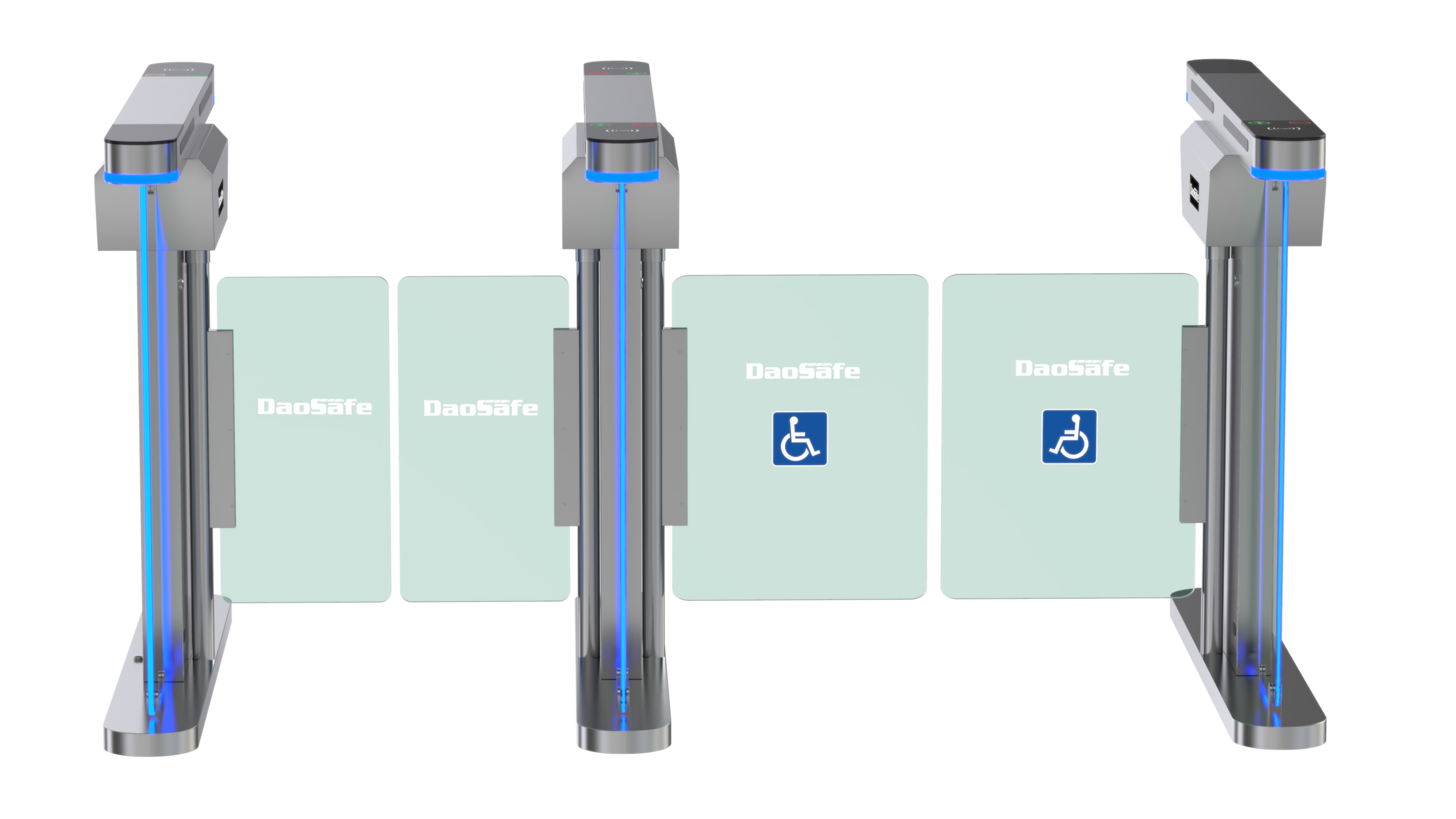 Nebula optical swing turnstile with the most advantage is that the passage width can reach to 650mm-1100mm, which is suitable for handicapped person with wheelchair or pedestrians with luggage. DSC-20 is with unique design, stylish of modern and urbanization cabinet, typical swipe card panel, attractive blue LED strip, solid body crate, sensitive infrared sensor strip, brushed stainless steel and high-end black painting process.
