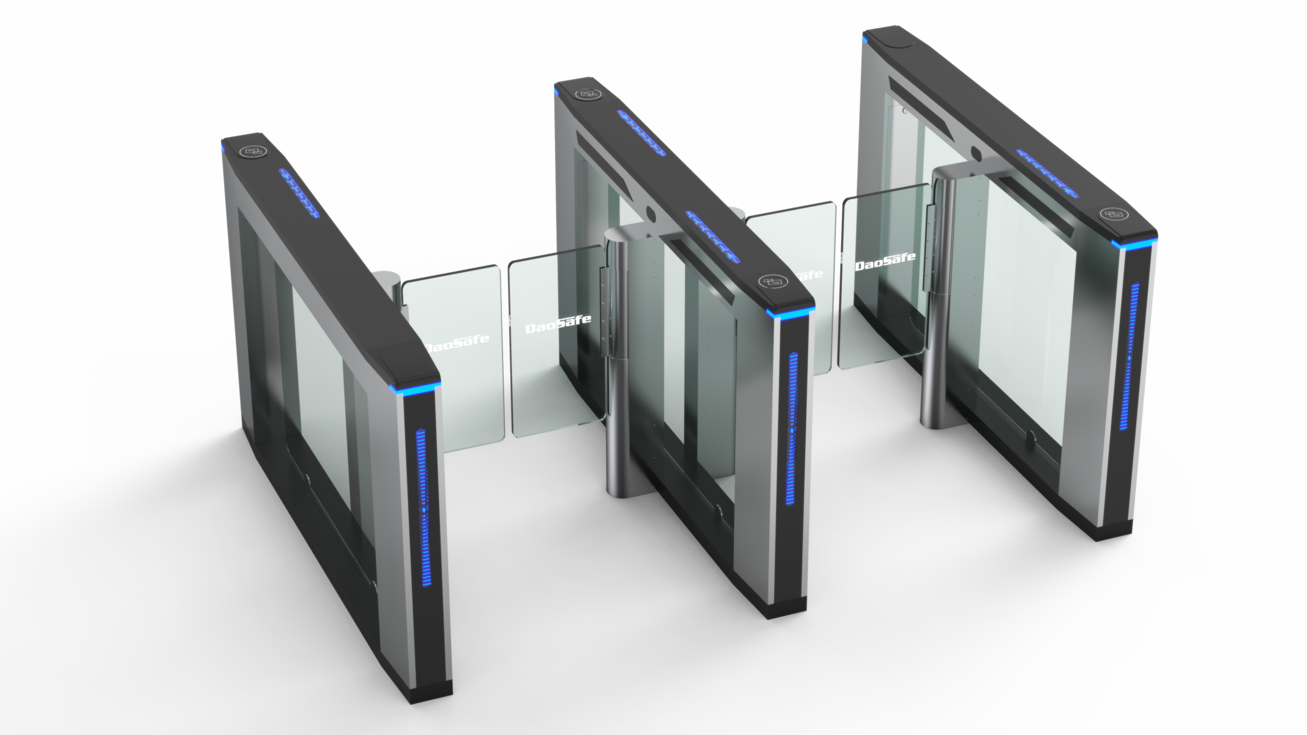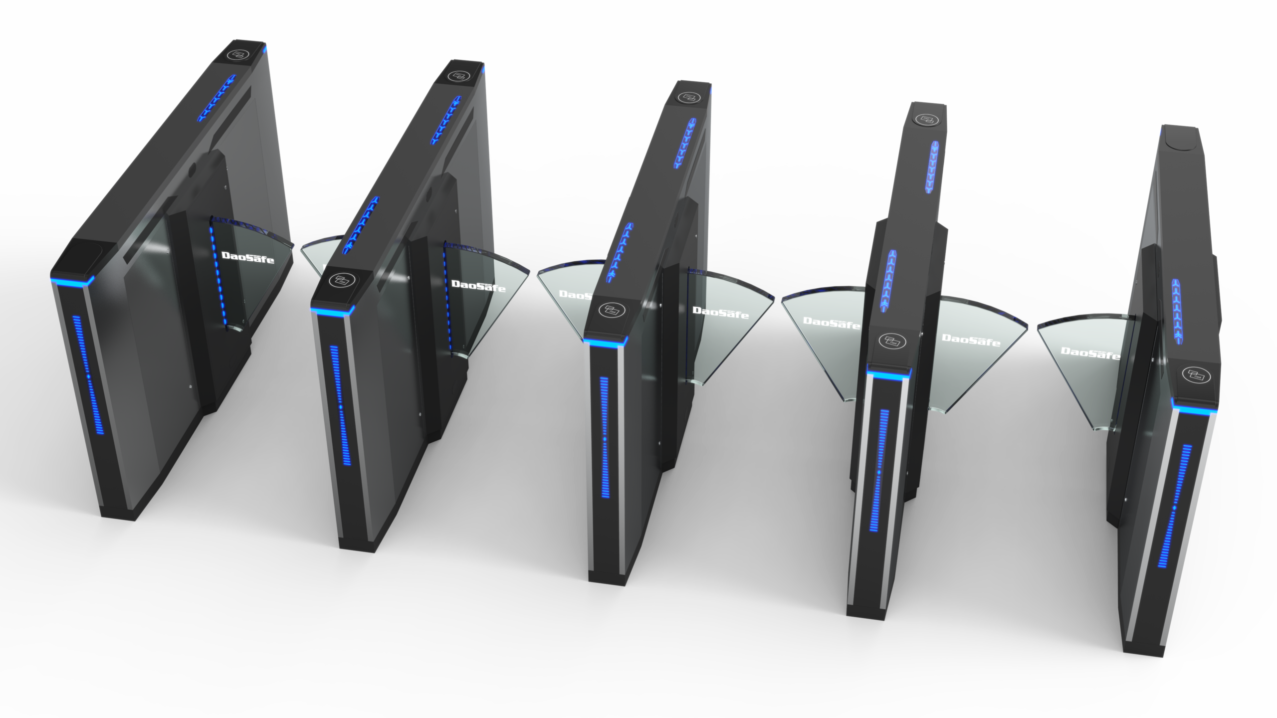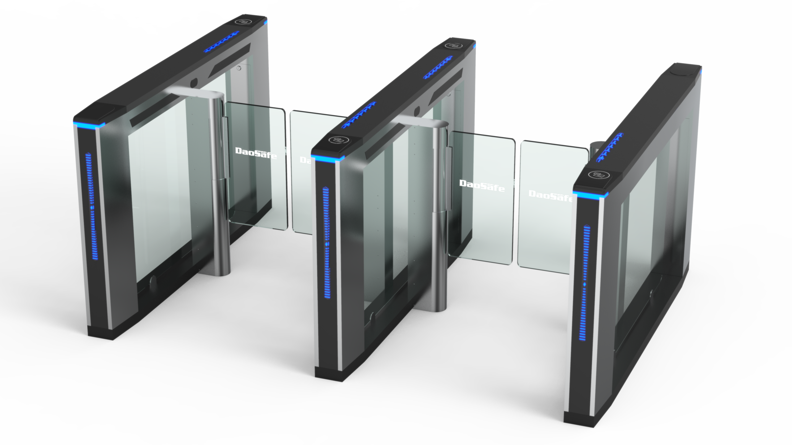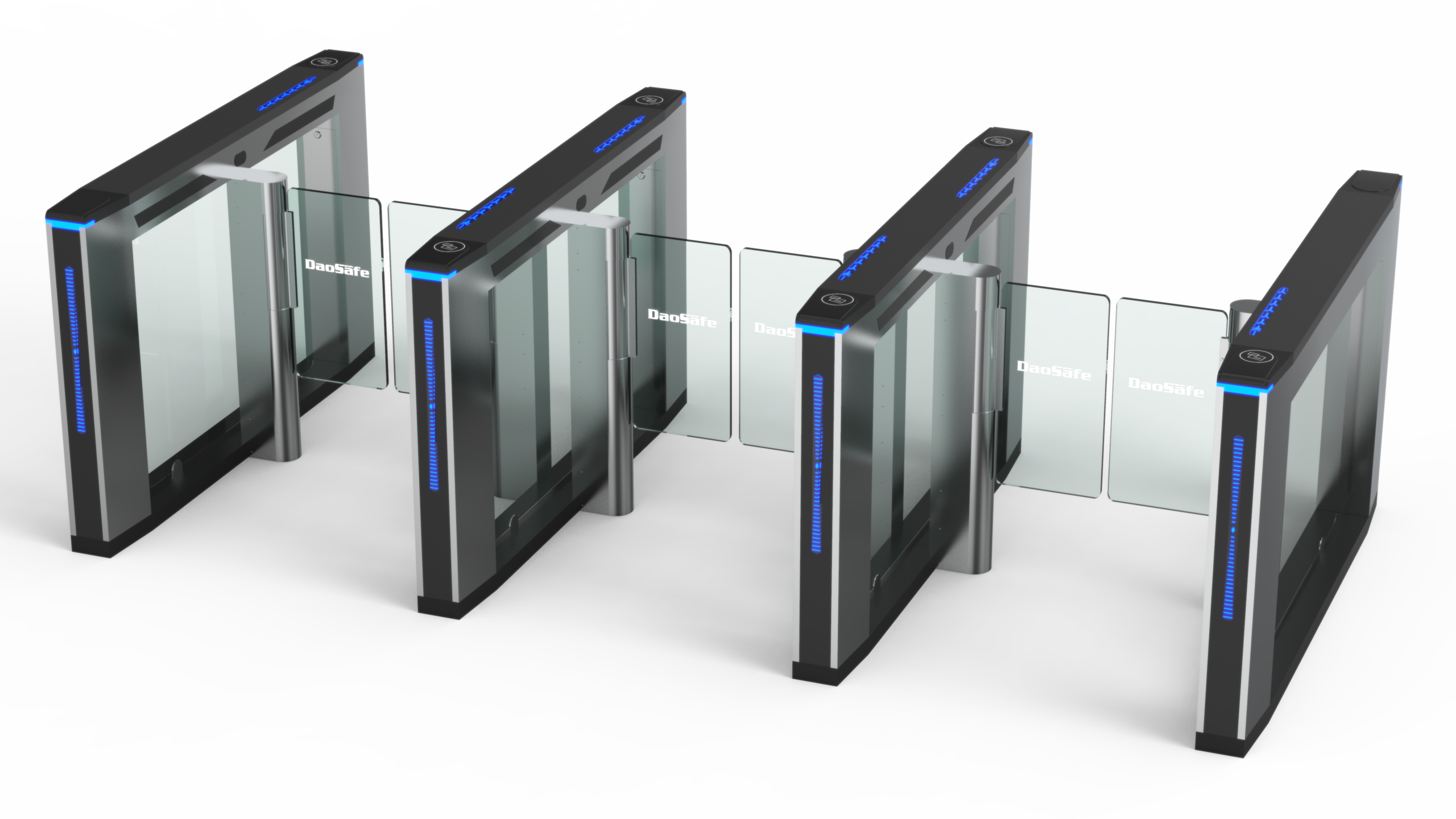 Nebula optical swing turnstile with the most advantage is that the passage width can reach to 650mm-1100mm, which is suitable for handicapped person with wheelchair or pedestrians with luggage. DSC-20 is with unique design, stylish of modern and urbanization cabinet, typical swipe card panel, attractive blue LED strip, solid body crate, sensitive infrared sensor strip, brushed stainless steel and high-end black painting process.