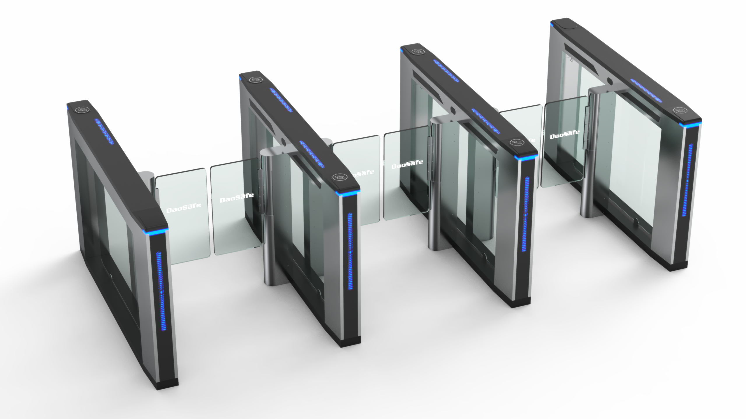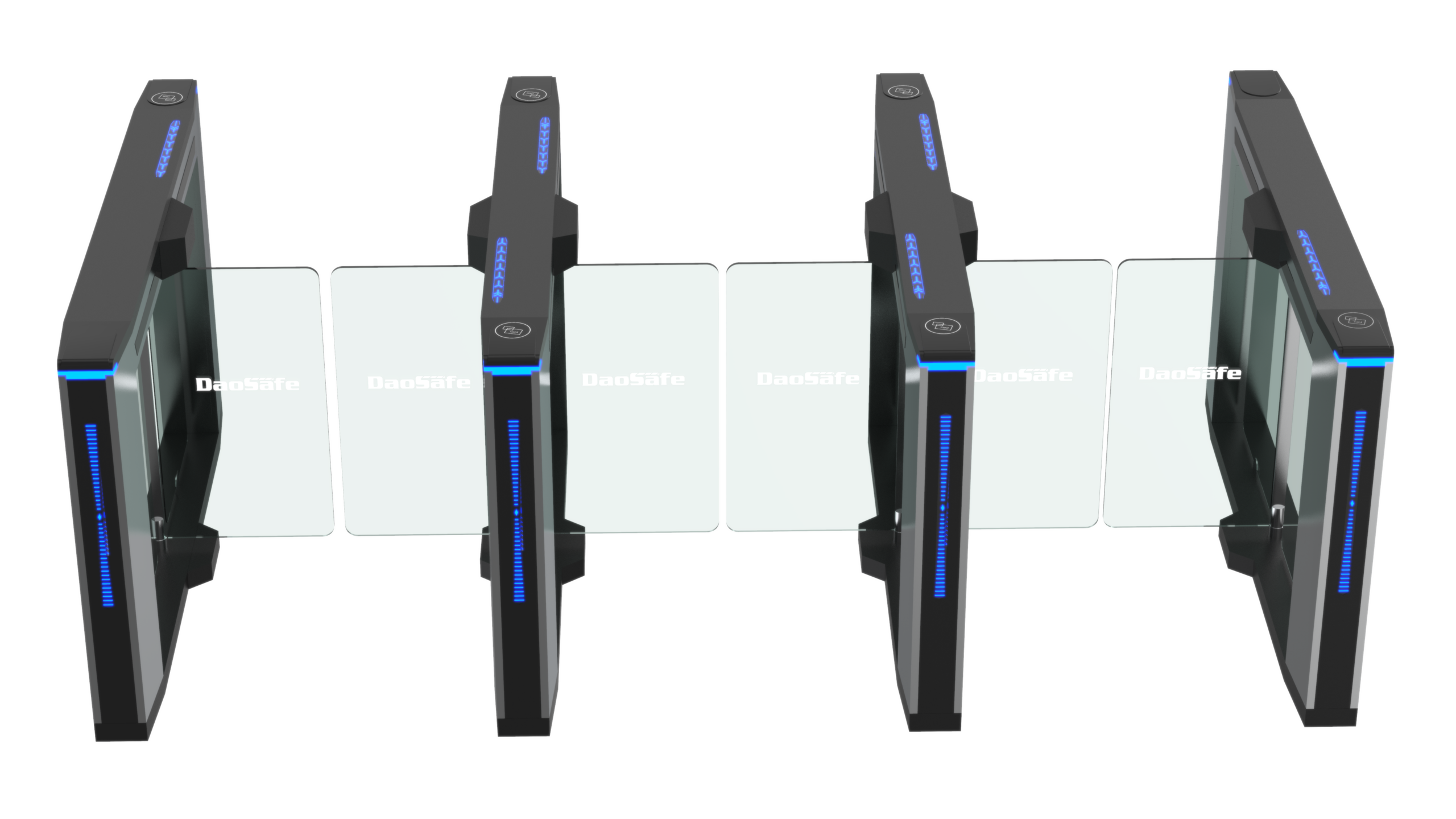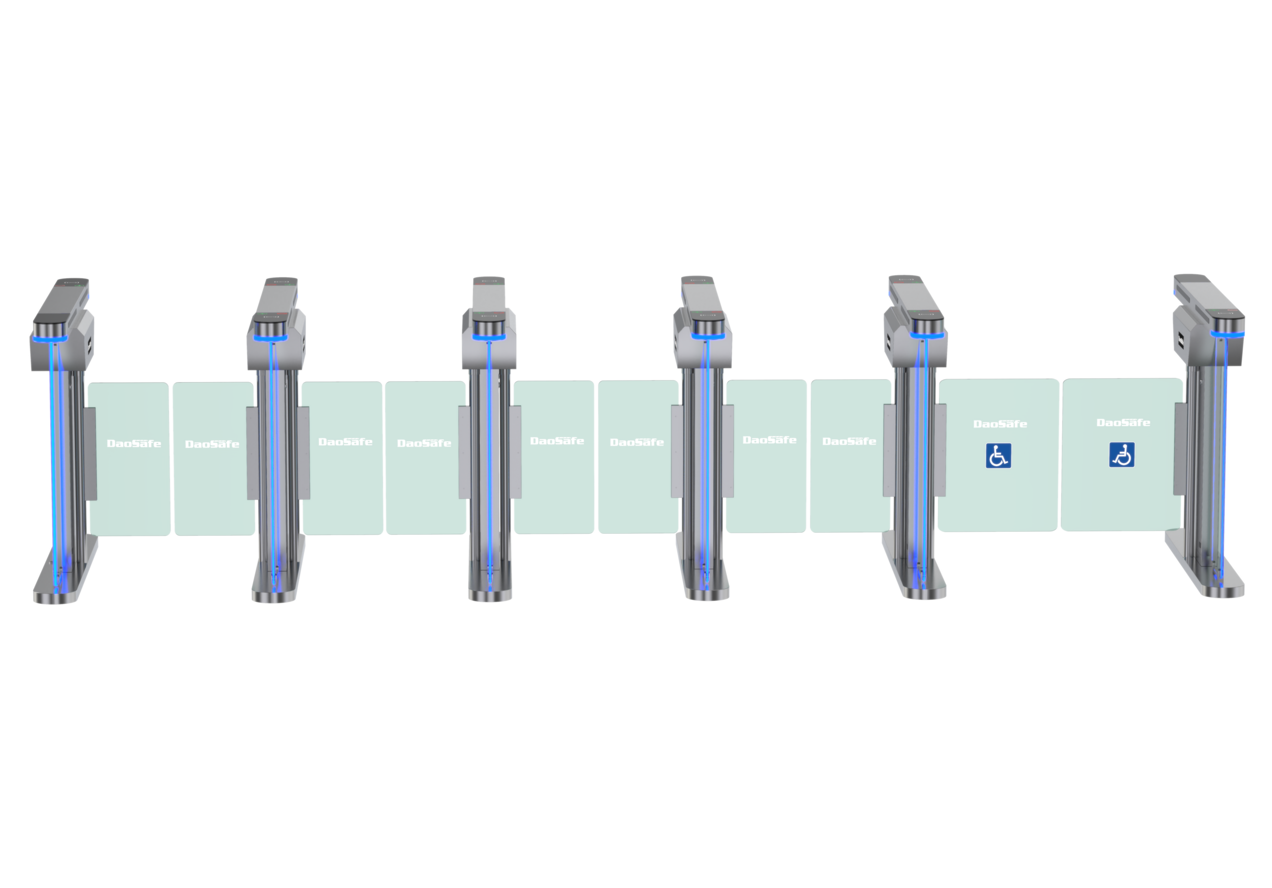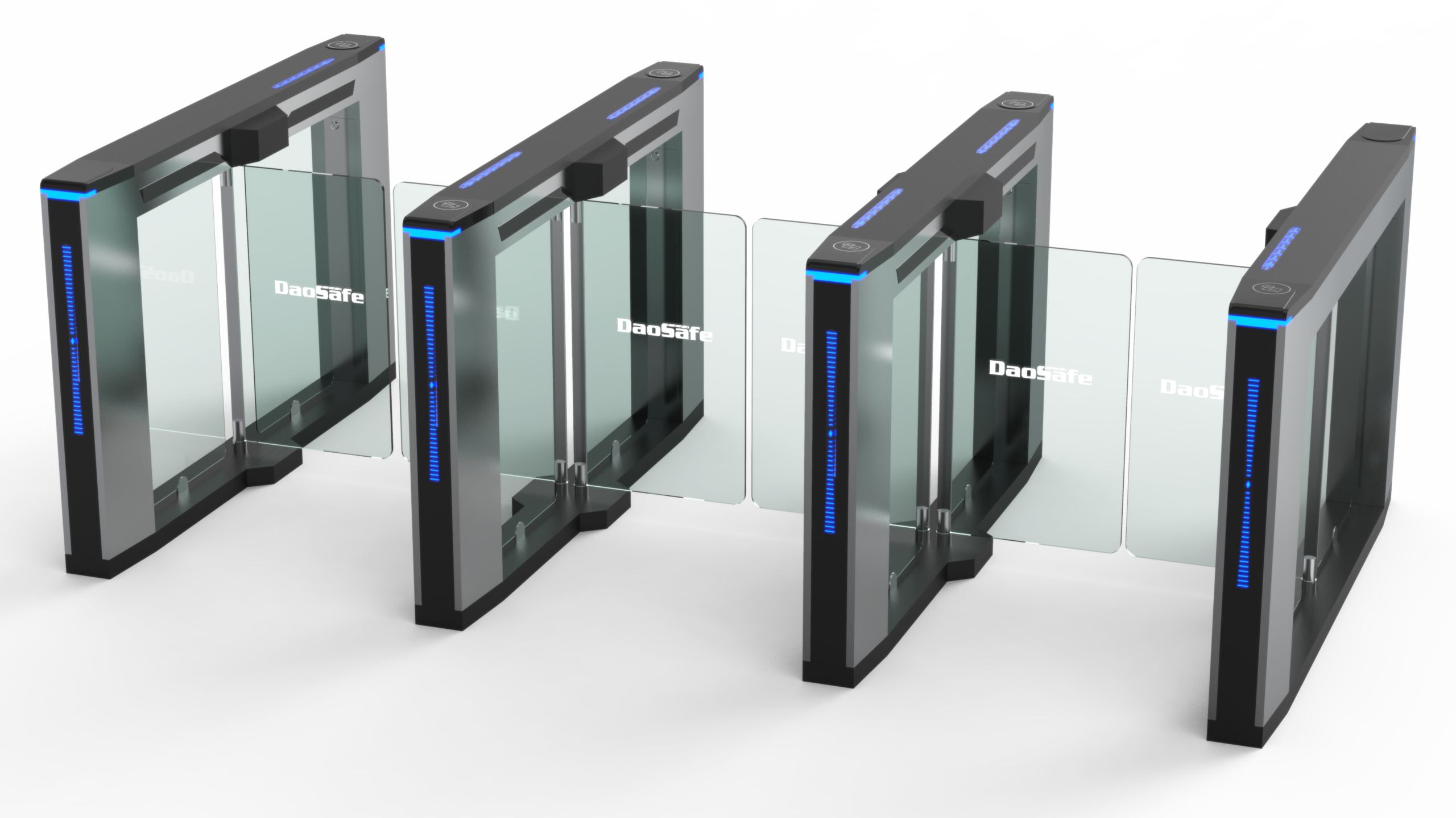 Nebula optical swing turnstile with the most advantage is that the passage width can reach to 650mm-1100mm, which is suitable for handicapped person with wheelchair or pedestrians with luggage. DSC-20 is with unique design, stylish of modern and urbanization cabinet, typical swipe card panel, attractive blue LED strip, solid body crate, sensitive infrared sensor strip, brushed stainless steel and high-end black painting process.