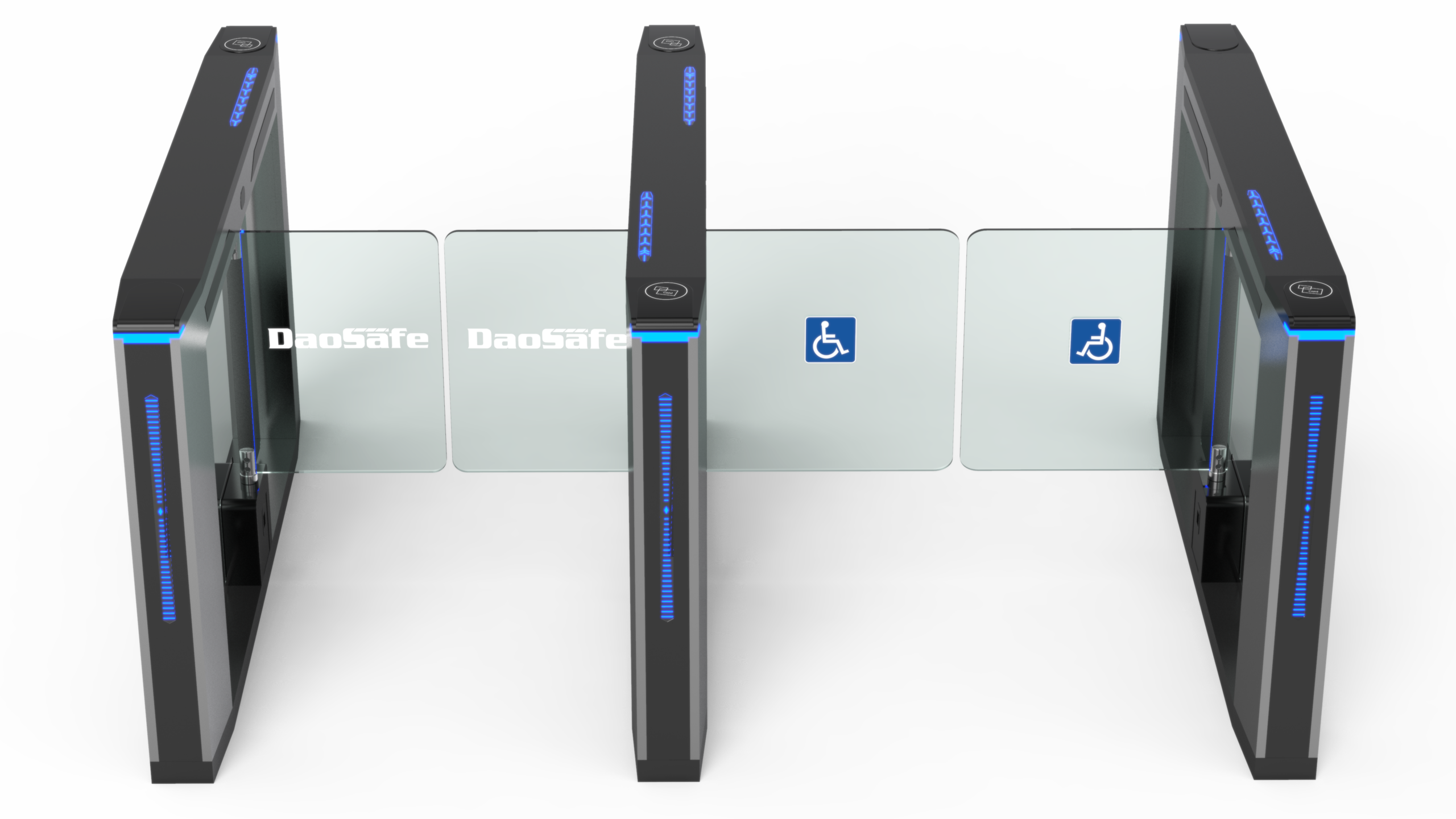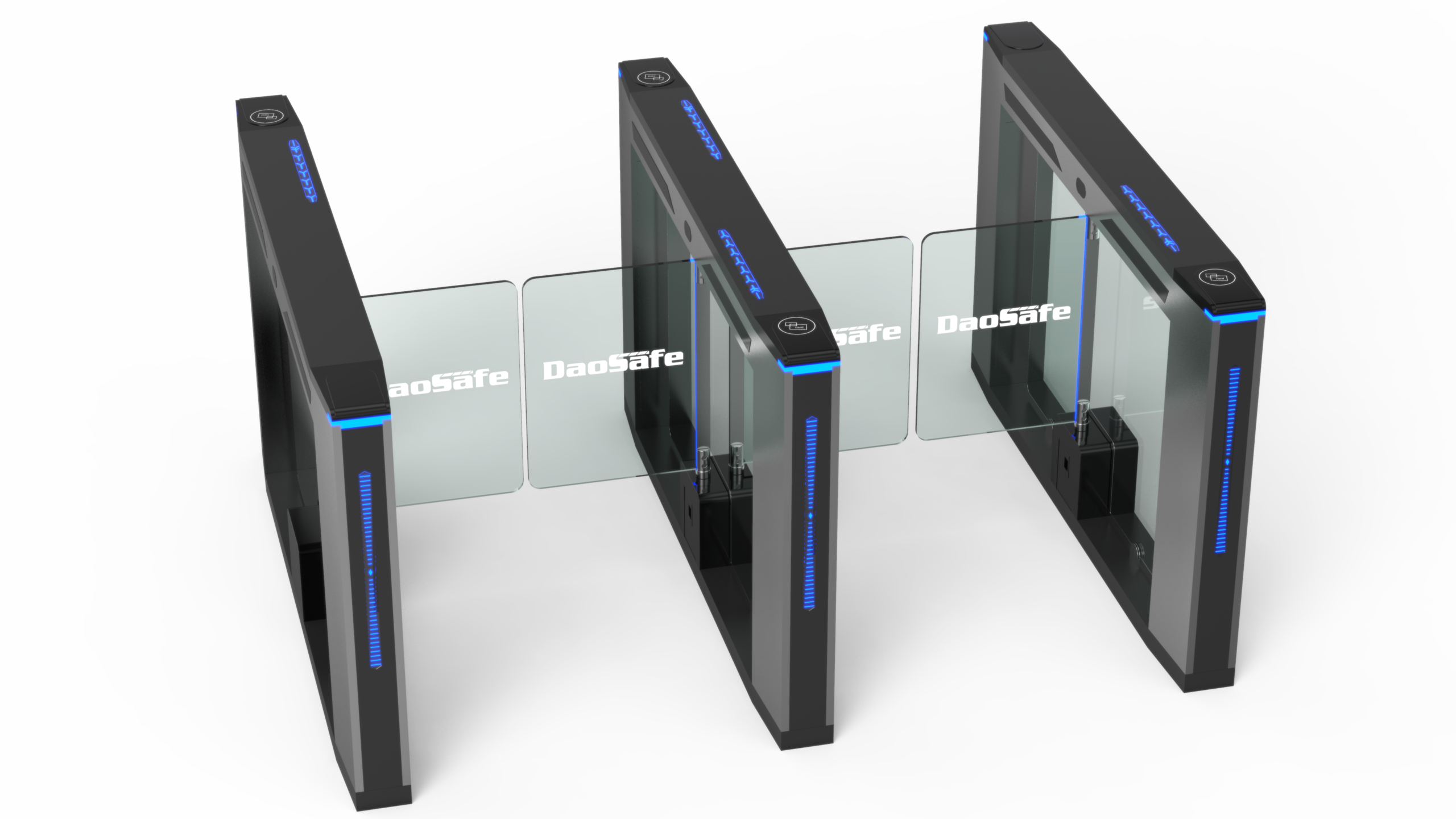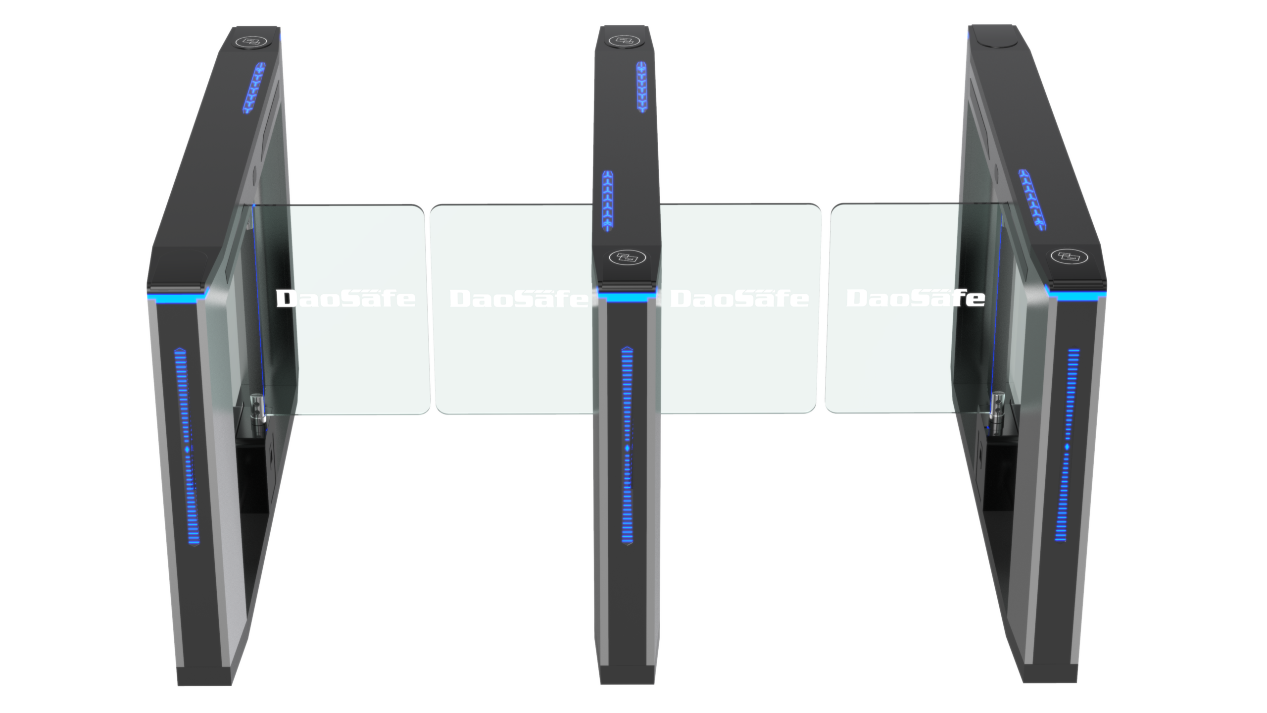 Nebula optical swing turnstile with the most advantage is that the passage width can reach to 650mm-1100mm, which is suitable for handicapped person with wheelchair or pedestrians with luggage. DSC-20 is with unique design, stylish of modern and urbanization cabinet, typical swipe card panel, attractive blue LED strip, solid body crate, sensitive infrared sensor strip, brushed stainless steel and high-end black painting process.