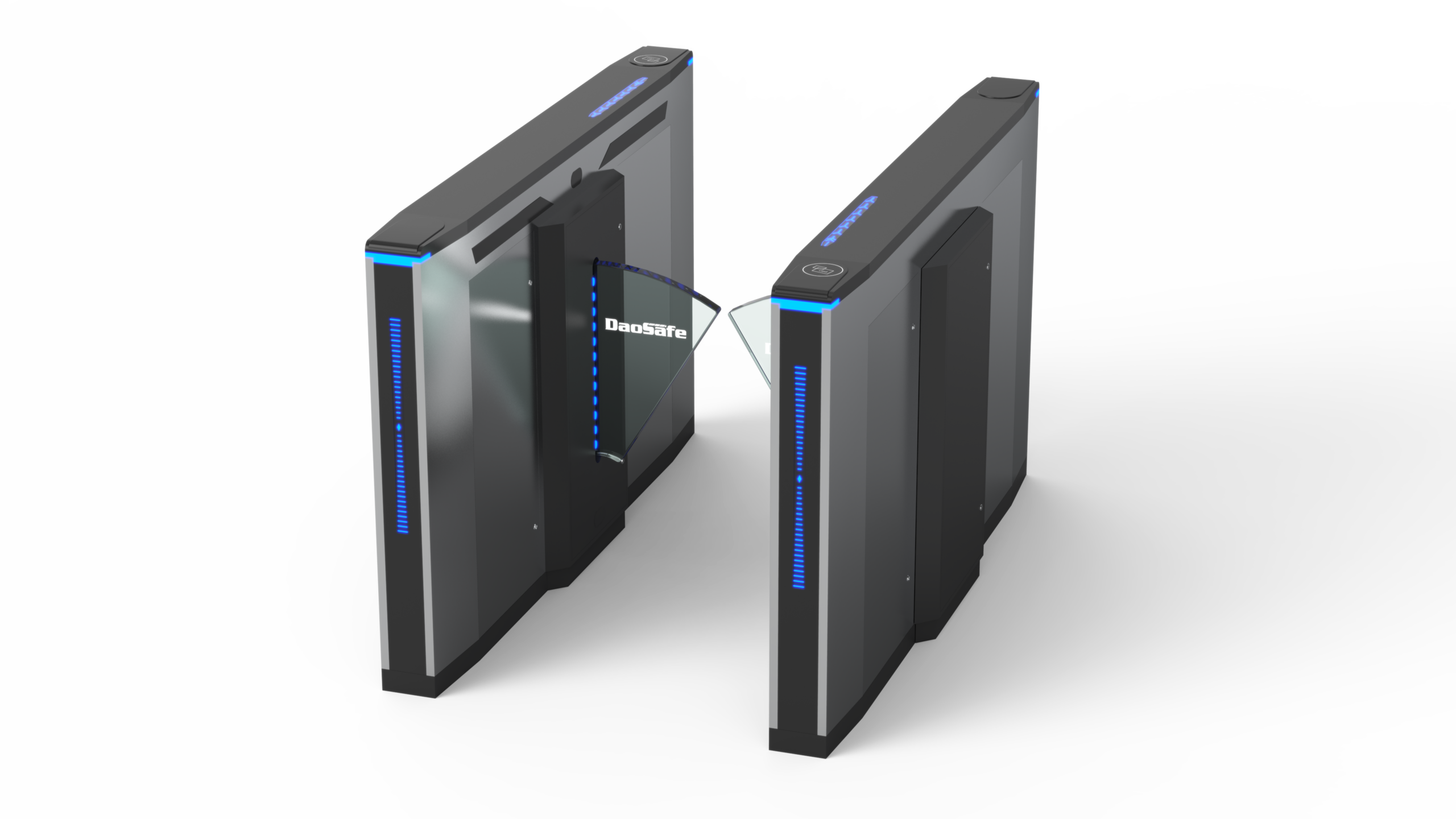 The most special feature of DSC-30 is faster open and close speed than other turnstile gates, normally 45 persons per minute. So, it’s perfect for the sites with big visitor’s flow rate. Nebula optical flap turnstile with unique design, stylish of modern and urbanization cabinet, typical swipe card panel, attractive blue LED strip, solid body crate, brushed stainless steel and high-end black painting process.